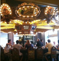 -Drinks at the Carousel Bar at The Hotel Monteleone. Basically the bar is slowly spinning around the bartenders who are situated inside the carousel center. It’s a bit unnerving at first, but after a few drinks the bar usually starts spinning anyways. Where else can you play the game “how does the bartender get out when he/she has to pee?” After many absurd guesses, (I was just sure there was a trap door I was missing) the answer was simple. They hop over the bar. Oh duh. So the weak, claustrophobic and small bladdered need not apply.