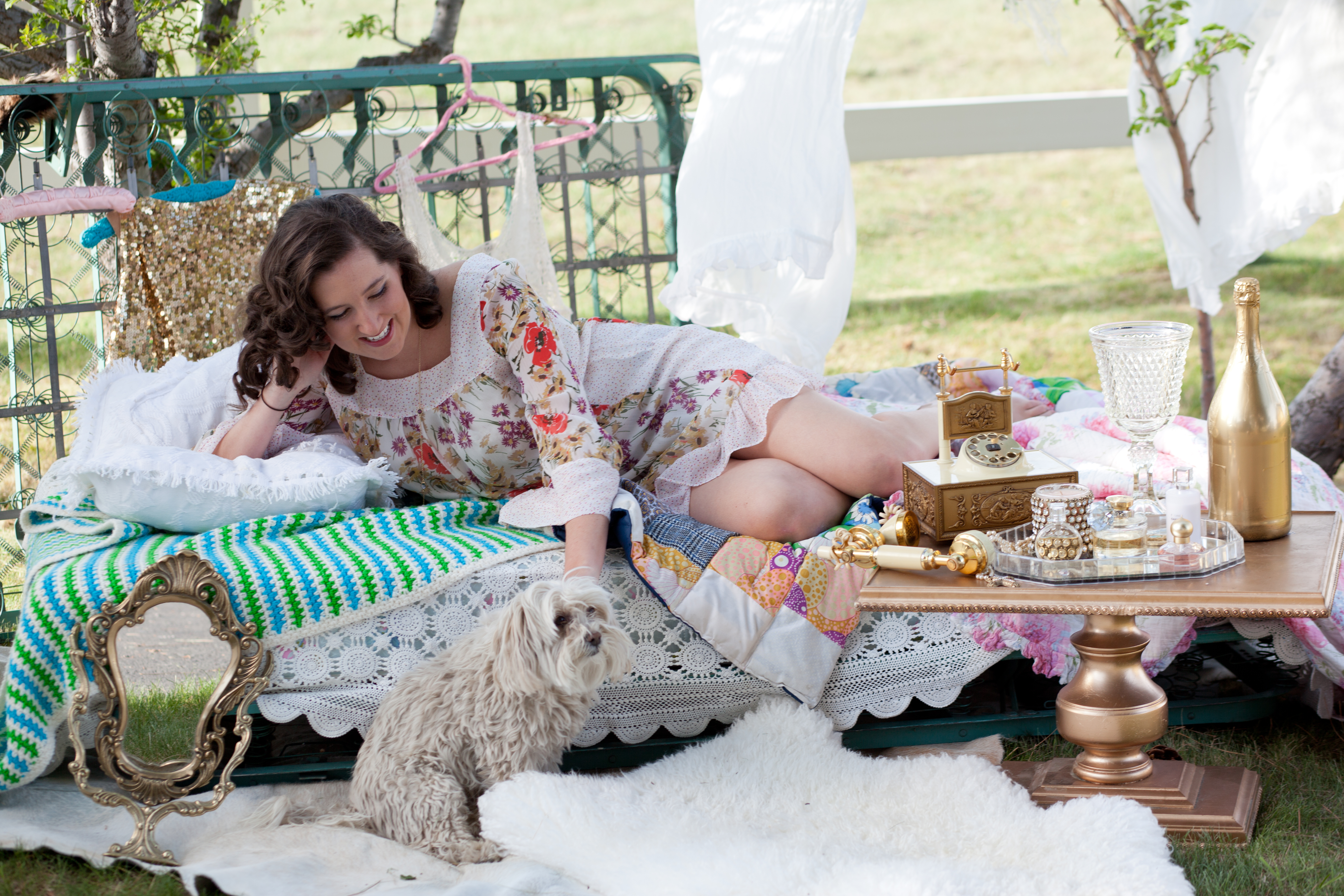 And they did not disappoint. The outdoor bedroom the team created was the perfect balance of vintage bohemian and classic elegance; the perfect complement to my cowboy boots and breezy tunics. Tambi served us champagne and the fun began. I chatted with Tambi and her team while I got my hair and make-up done. The conversation made me feel at ease and helped to take my mind off the fact that I was very nervous about the actual photo session.